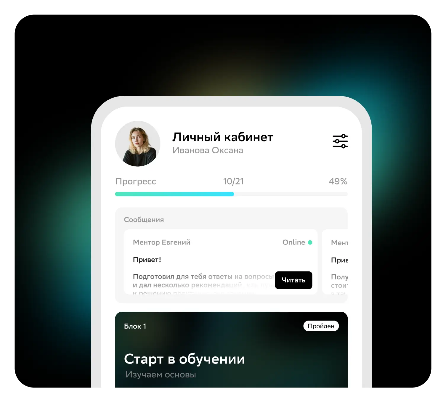 Индивидуальные консультации, поддержка в обучении и поиске работы
