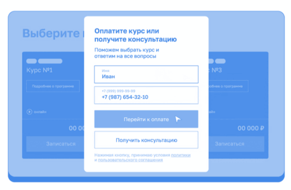 Введите свои данные и нажмите «Перейти к оплате»