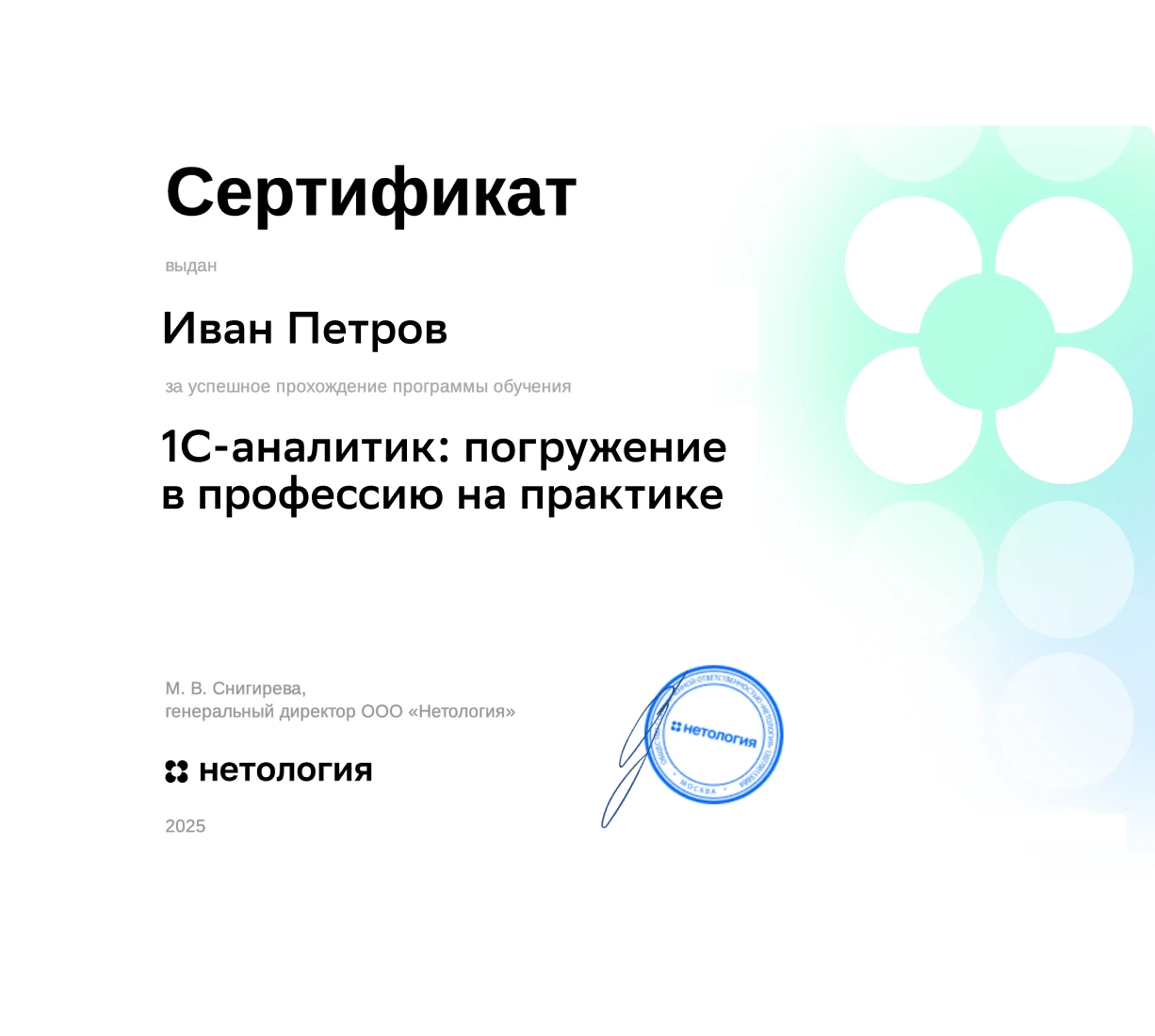Сертификат Нетологии и глоссарий начинающего 1С‑аналитика
