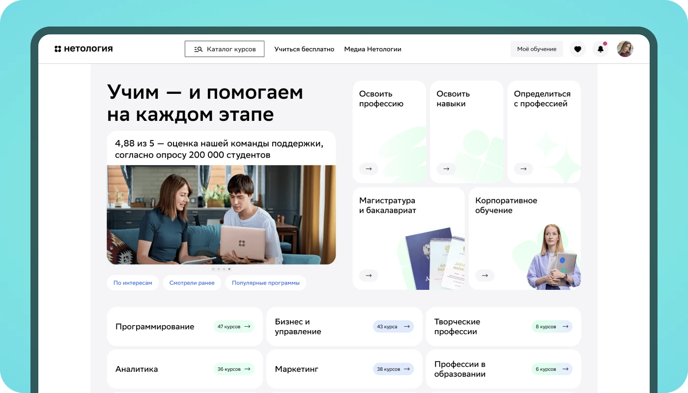 Приобретайте новое обучение или компенсируйте затраты на оплаченное в 2024−2025 году — субсидия распространяется на основной каталог курсов Нетологии