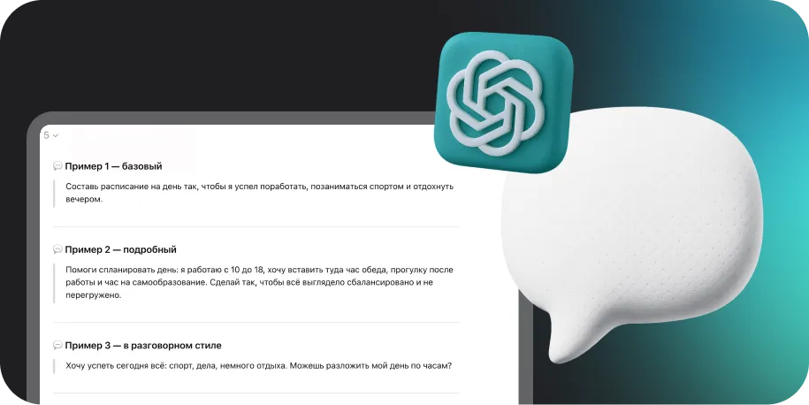 Научитесь писать промпты для разных целей — например, выделить главное из текста или составить расписание на день