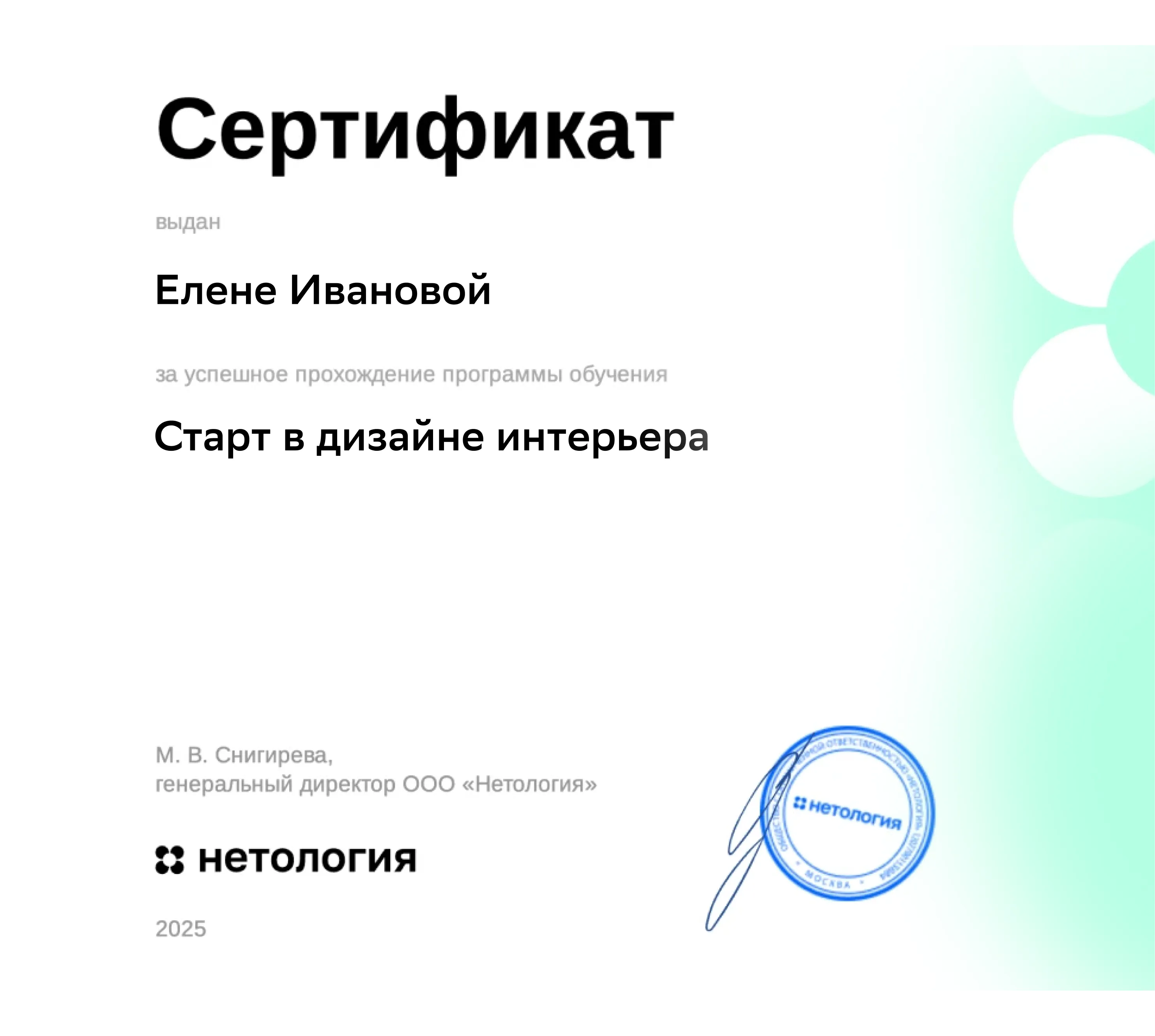 После обучения на бесплатном курсе вы получите сертификат Нетологии
