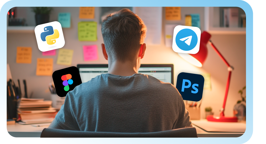 Например, научитесь писать ботов для Telegram на Python или дизайнить выразительные плакаты.